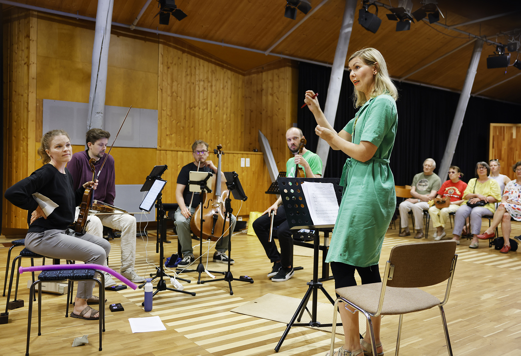 Meidän Festivaali on nyt puolessa välissä Koneen säätiön tukemaa Siirtymä-hanketta, jonka tavoitteena on toteuttaa festivaali hiilineutraalina vuodesta 2025 eteenpäin. Hankkeen ensimmäisenä vuonna 2022 laskettiin koko festivaalin hiilijalanjälki (psst. lue lisää täältä), ja vuoden 2023 välietappina oli hiilineutraalin kantaesityksen tilaaminen säveltäjä Minna Leinoselta. Leinosen juuri Teosto-palkinnon voittanut jousikvartetto …and we are rotating with it tuotti päästöjä 0,9 tonnia CO2e:tä, ja sen osuus festivaalin kokonaispäästöistä oli n. 4%. Sävellystyön ja kantaesityksen tuottamat päästöt kompensoitiin kotimaisen Hiilipörssin kautta, joka käytti ostetut CO2-krediitit Piitsonsuon ennallistamishankkeeseen Ilomantsissa.
